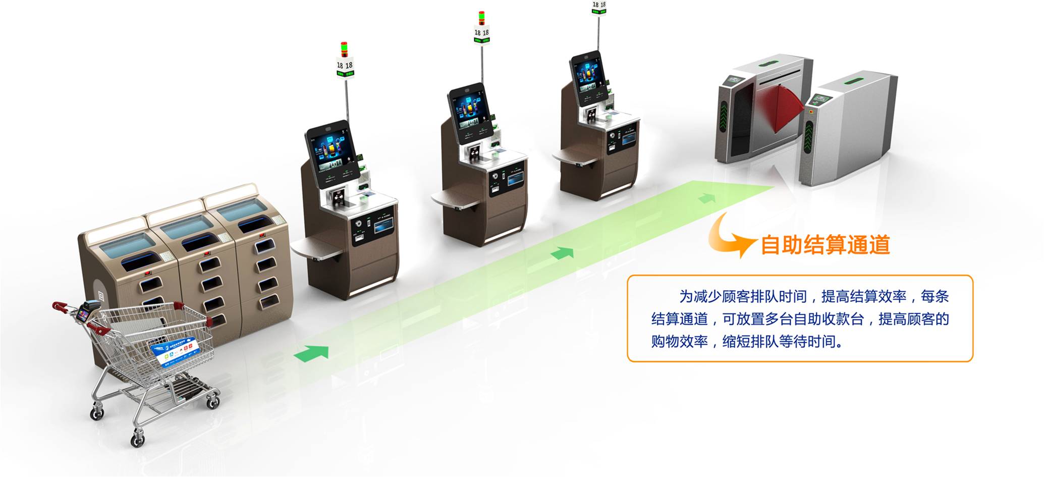 大型商超自助收銀系統徹底解決了大型商超收費排隊難、收銀員難找、杜絕了商品盜竊的現象,該設備系統實現了自助收銀快速通道,是原人工收款速度的10倍以上,為您節約時間,提升了效率。參考尺寸: