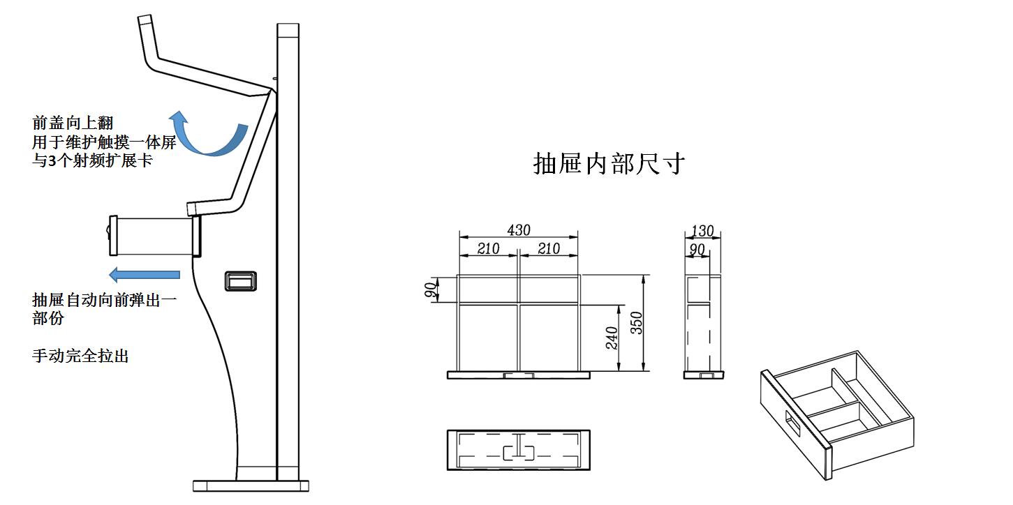執(zhí)法一體機(jī)我公司專為上海檢查院設(shè)計(jì)并生產(chǎn)加工的一款執(zhí)法查詢自助一體機(jī),整機(jī)符合人體工程設(shè)計(jì),機(jī)身大氣,外形精細(xì)、新穎、美觀、簡(jiǎn)潔,屏幕采用19寸觸顯一體屏,高清雙目活檢攝像頭,可對(duì)進(jìn)出辦事人員進(jìn)行人臉識(shí)別比對(duì),集成身份證讀卡功能,采集身份信息及識(shí)別,一體機(jī)還配備自動(dòng)彈開抽屜 ,放置GPS手環(huán),同時(shí)可以對(duì)多個(gè)手環(huán)充電。