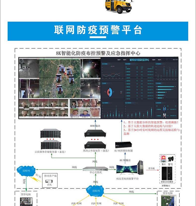 7. 支持有線網絡/WIFI/4G聯網到防疫指揮中心平臺及第三方平臺;