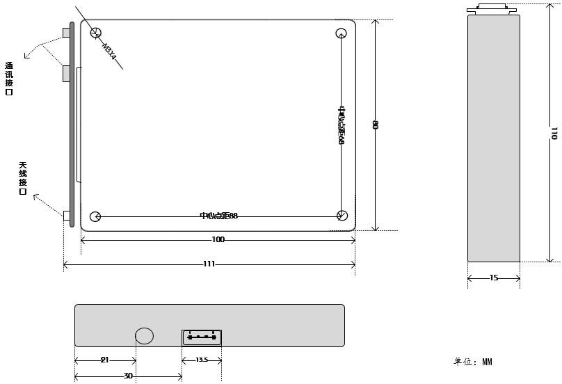 天線接口(具體天線規格及尺寸根據用戶要求可定制,具體尺寸會有變化)