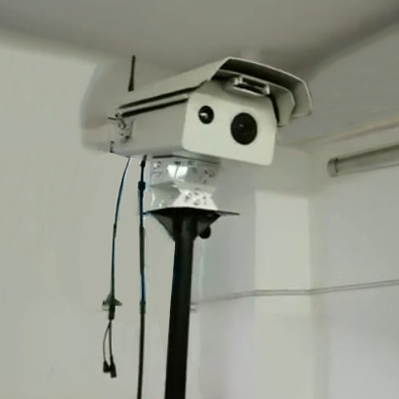 選擇一個室內壞境,通過三腳架或支架固定安裝熱像儀,如果使用外置485溫感(溫感485接口和熱像的485接口連接,供電也可以和熱像共用一個電源),場地有條件情況下,把外置485溫感安裝在熱像畫面的左上方或右上方。有些場地沒有條件,可以把外置溫感放置在三角架下。如果外置溫感安裝在畫面中(等同于黑體的作用),環境溫度的變化對測溫精度度影響很小,設備會自動校正,如果安裝在別處,畫面中背景環境溫度變化的話,會影響測溫精度,如果測溫精度下降,可手動重新校正溫度。如果使用黑體,把黑體放置在監控畫面中,一般選左右上方。