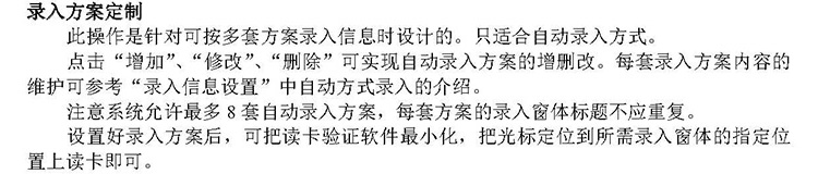 注意系統允許最多8套自動錄入方案,每套方案的錄入窗體標題不應重復。