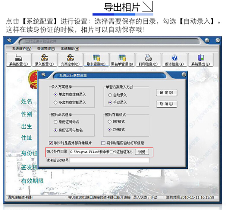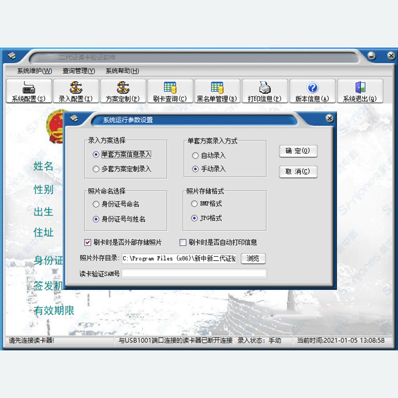 上述設置,應在正式二代證讀卡錄入前設置好,錄入參數一經設置,可立刻生效。