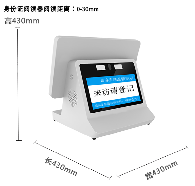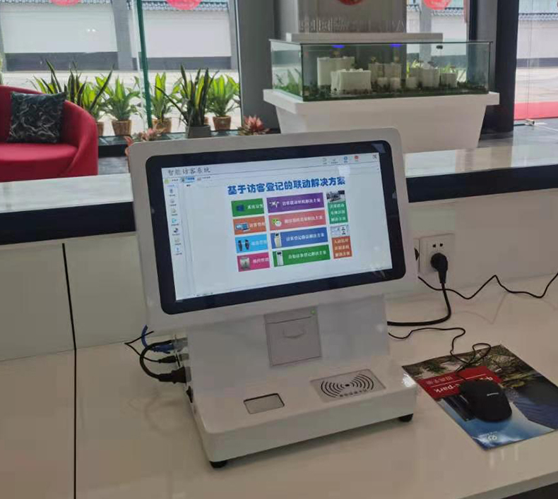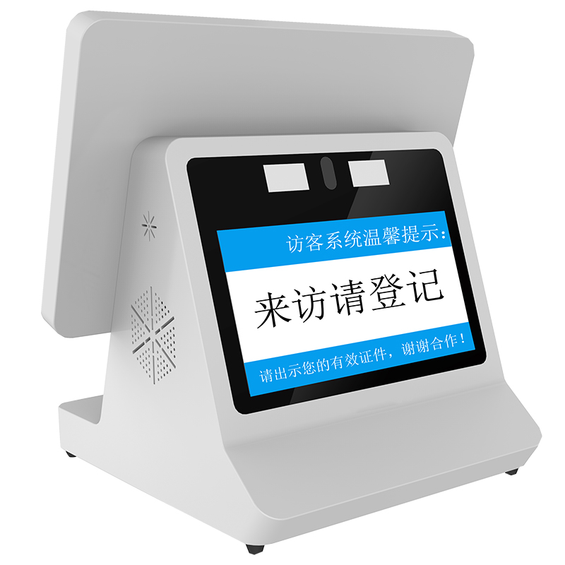 訪客機管理系統主要針對來訪人員進行信息化登記,相比傳統手工登記提高了工作效率,同時快將訪客信息以電子化形式保存,方便日后查詢,訪客機采用鈑金烤漆工藝外殼,集成15.6寸觸摸一體屏和11.6寸顯示屏,身份證閱讀器、打印機、高清攝像頭、條碼掃描等模塊 。