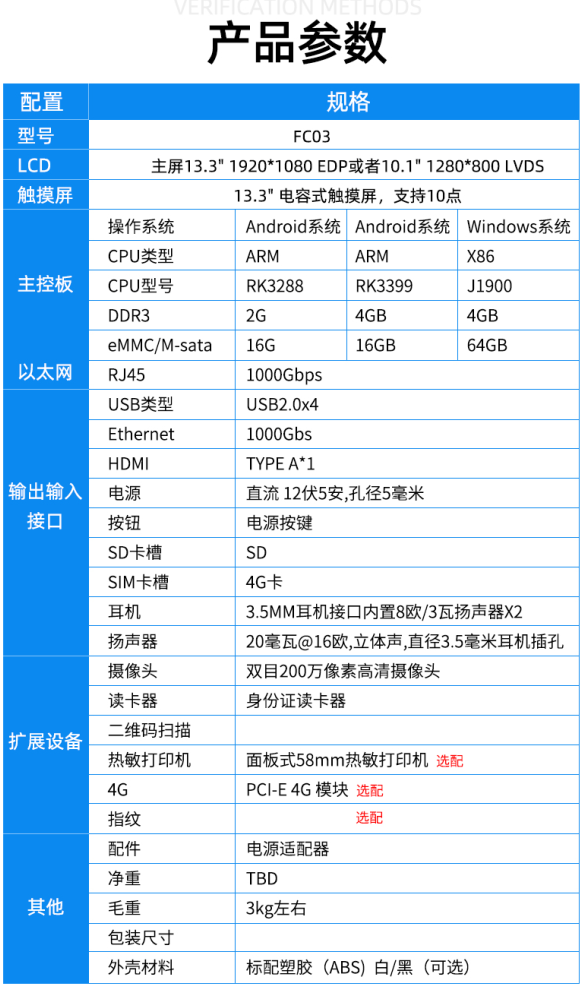 》 內置身份證識別模塊、二維碼掃描模塊、打印機等模塊