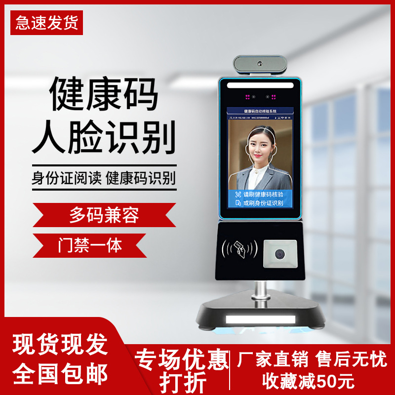 深圳廠家直銷學校商場寫字樓人員進出登記管理一體機人臉識別測溫身份證讀取健康碼掃設備