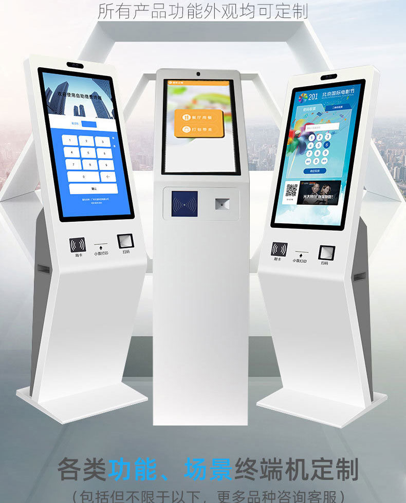 供電腦觸控產品、自助服務終端的設計及生產服務,主要產品自助終端機、自助打印機、自助取票機、自助查詢機、自助繳費機、自助發卡機、自助政務一體機,產品使用于各個行業;醫院、學校、銀行、酒店、景區等。。。。。