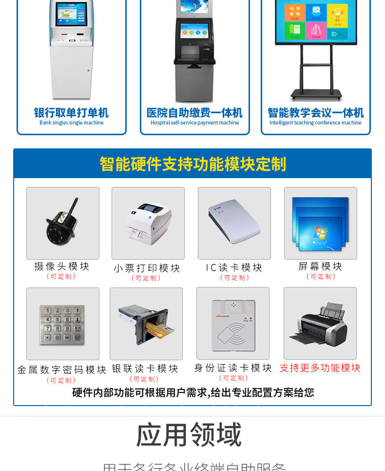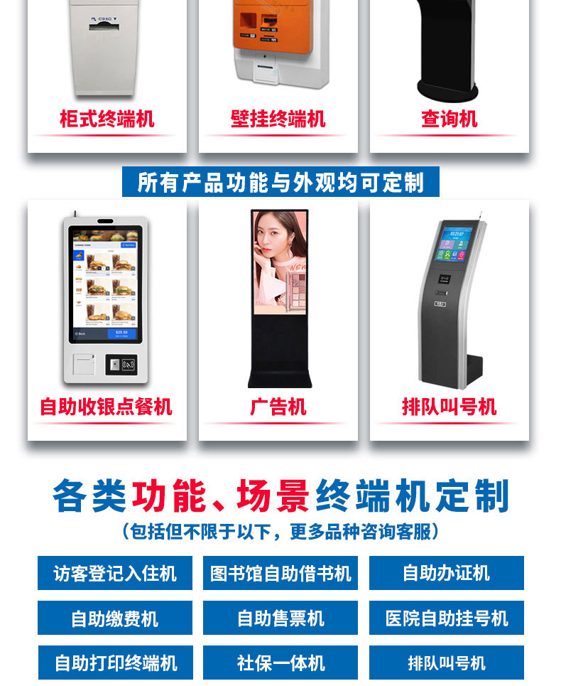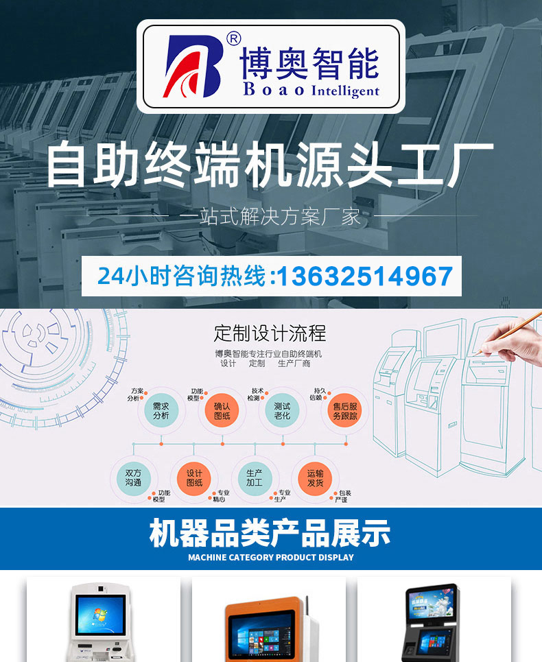 深圳市博奧智能科技有限公司專業提供自助終端機、觸摸查詢一體機、廣告機、液晶顯示器等產品的硬件、軟件研發與設計加工OEM/ODM等一站式服務;我們一直秉承以產品質量為核心、客戶至上、服務共贏為宗旨,為金融、醫療、教育、人工智能、政府工程項目、智慧城市、軌道交通、商業自助服務、廣告傳媒等行業提供質量過硬的產品和優質的服務。