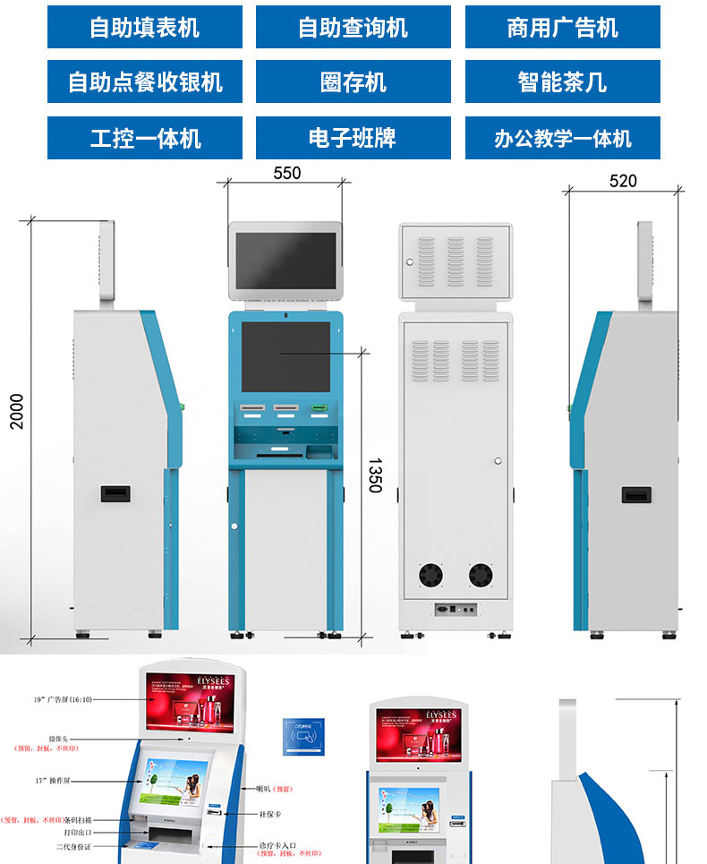 銀行政務醫院打印取單發卡多功能雙屏一體機智能自助終端應用系統軟件開發