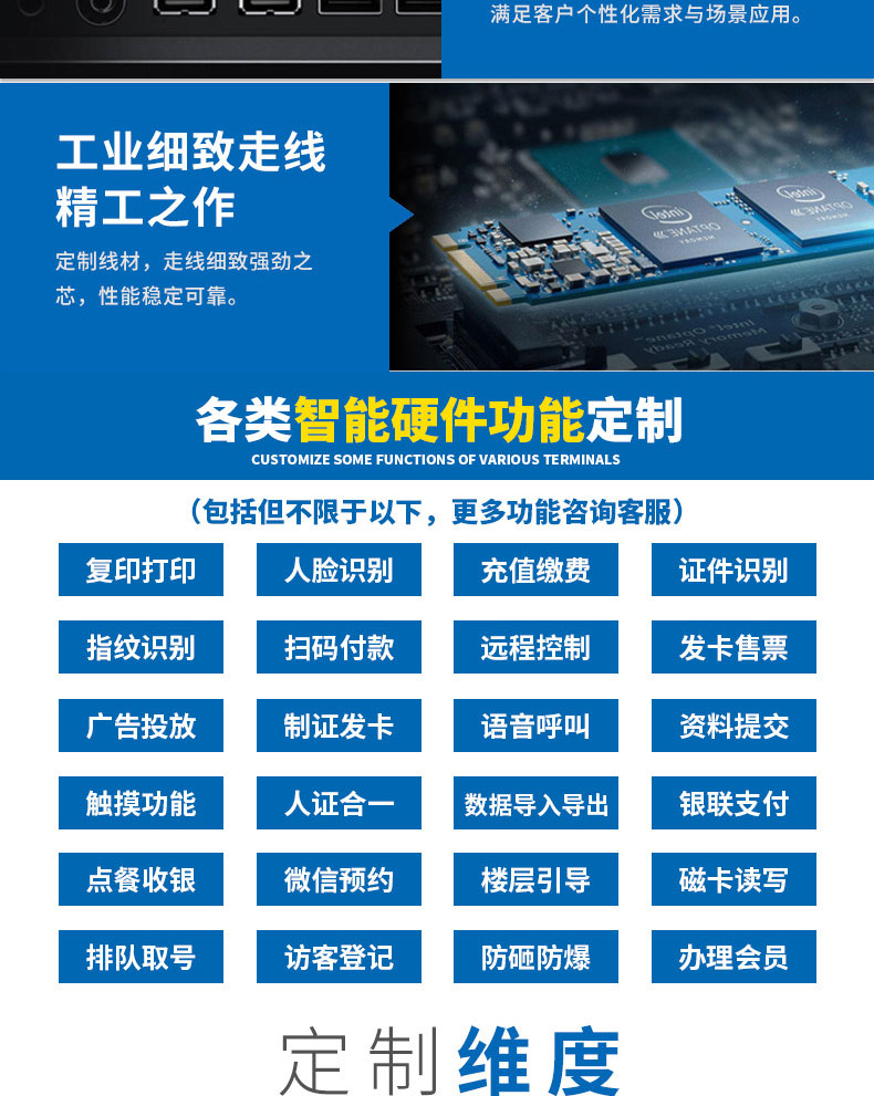 深圳市博奧智能科技有限公司專業提供自助終端機、觸摸查詢一體機、廣告機、液晶顯示器等產品的硬件、軟件研發與設計加工OEM/ODM等一站式服務;我們一直秉承以產品質量為核心、客戶至上、服務共贏為宗旨,為金融、醫療、教育、人工智能、政府工程項目、智慧城市、軌道交通、商業自助服務、廣告傳媒等行業提供質量過硬的產品和優質的服務。