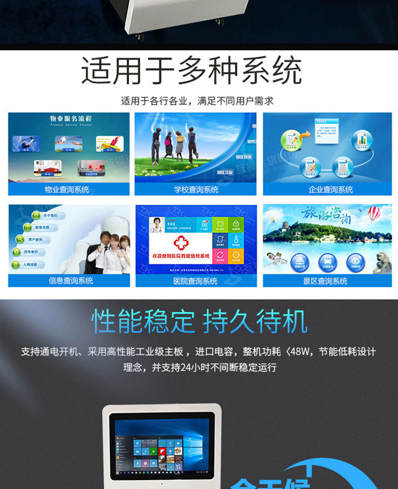 定制實(shí)用的自助終端設(shè)備,我們是專業(yè)。多種定制款式任意選擇,可根據(jù)需求定制外觀屏幕尺寸可選,配件數(shù)量可選,主機(jī)配置可選。