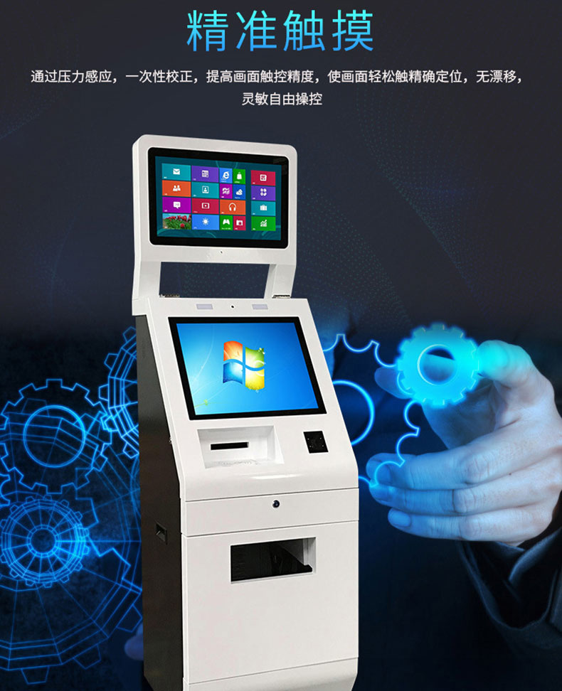 大廳雙屏觸摸一體機(jī)定制人臉識(shí)別發(fā)卡A4打印自助終端系統(tǒng)軟件開發(fā)