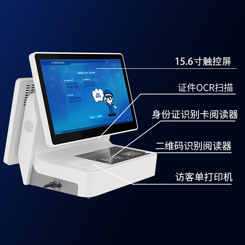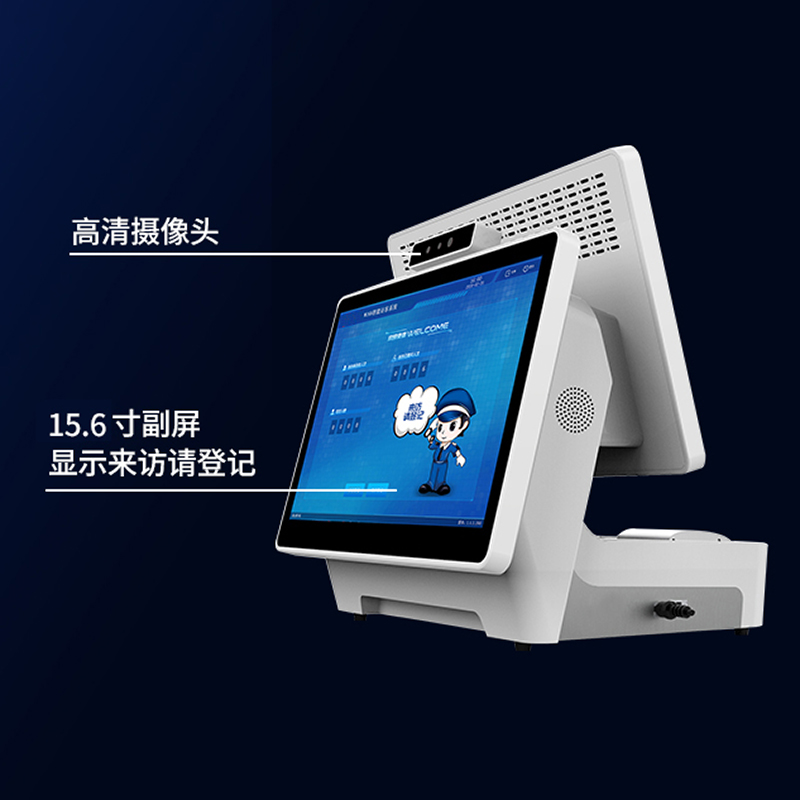 15.6寸雙屏智能訪客機是一種具有兩個15.6英寸屏幕的訪客管理設備,它主要用于企事業單位、政府機關、金融機構等場所的訪客登記和管理。這種設備的設計旨在提供一種高效、安全且用戶友好的訪客體驗。以下是15.6寸雙屏智能訪客機的一些主要特點和功能: